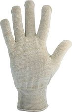 Универсальные хлопчатобумажные перчатки без покрытия. Защита рук от механических воздействий и общих производственных загрязнений.